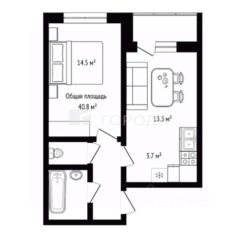 - Общая площадь: 40.8 м2