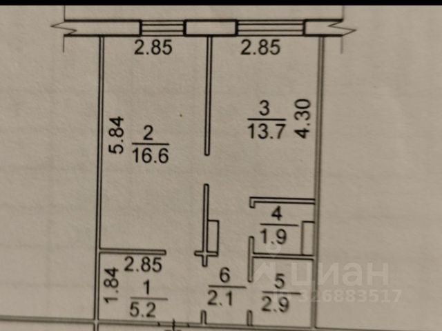 - Общая площадь: 42.5 м2