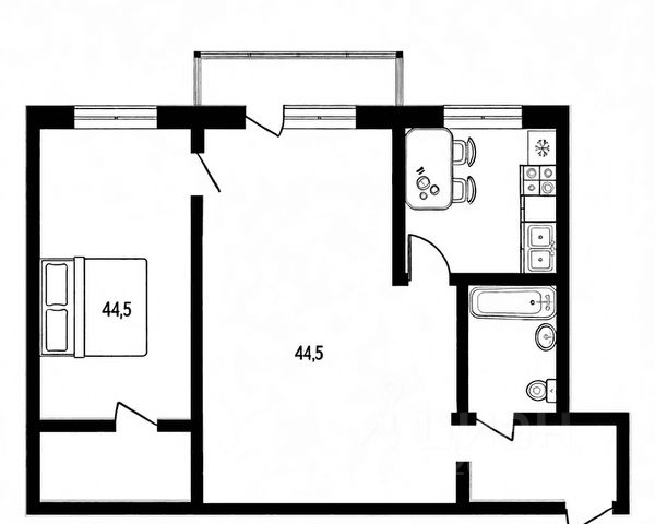 - Общая площадь: 44.5 м2