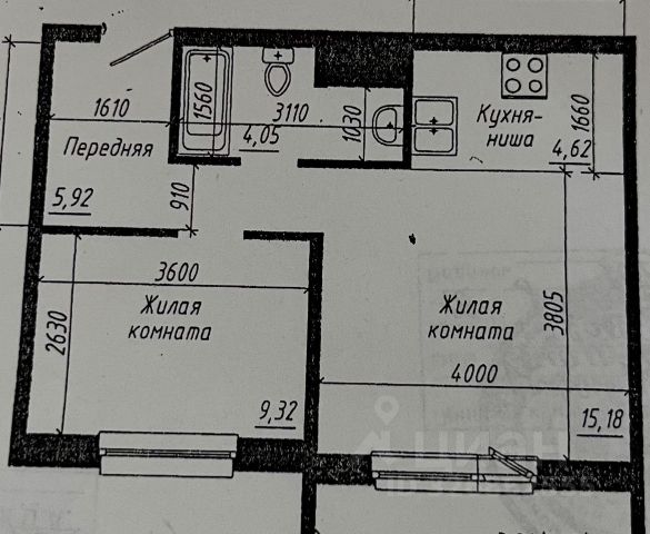 - Общая площадь: 38.9 м2