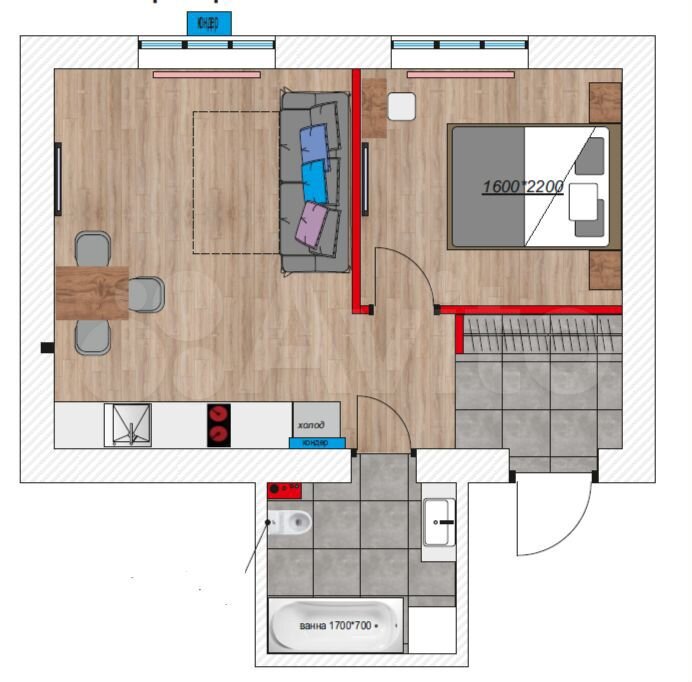 - Общая площадь: 38.9 м2