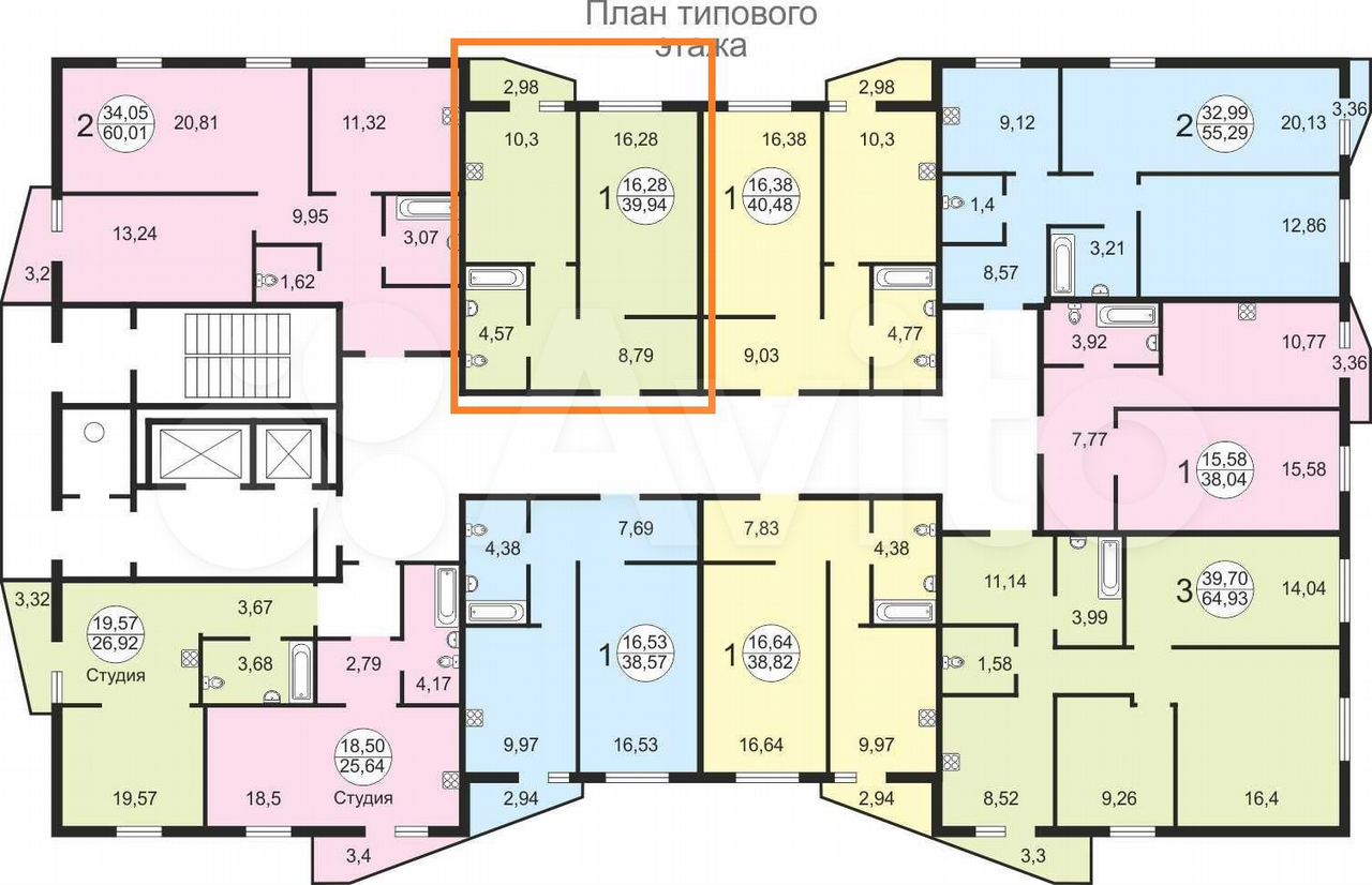 - Общая площадь: 39.9 м2