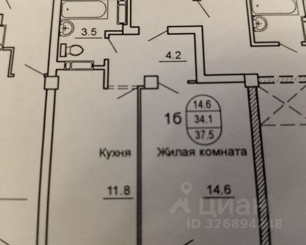- Общая площадь: 37.5 м2