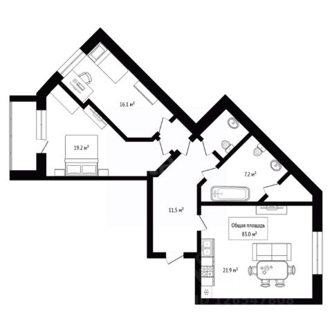 - Общая площадь 83 м2