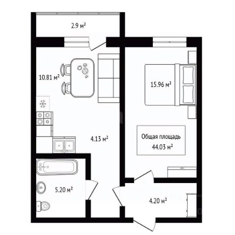 - Общая площадь 42.6 м2