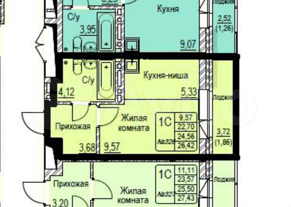 - Общая площадь 26.4 м2