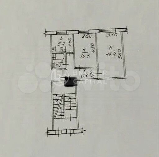 - Общая площадь: 42.8 м2