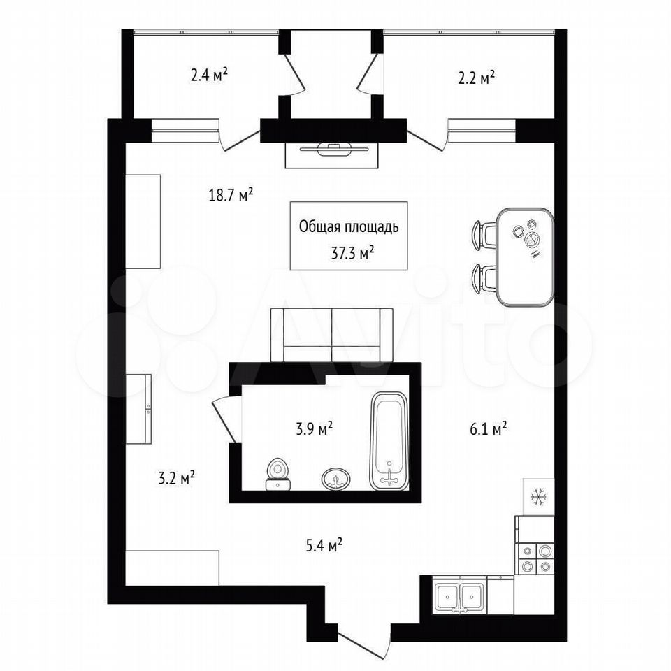 - Общая площадь: 37.3 м2