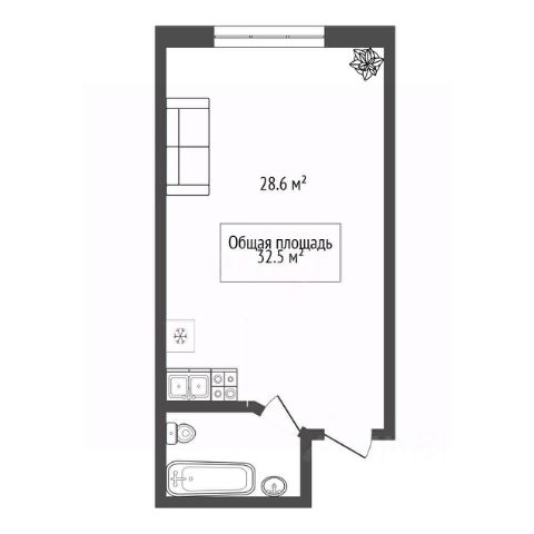 - Общая площадь 32.5 м2