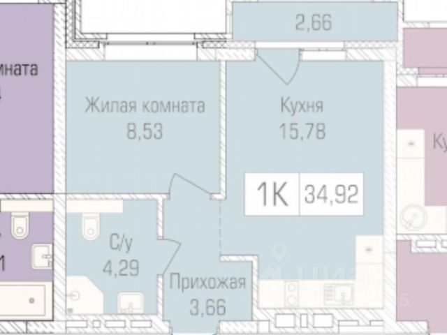 - Общая площадь: 34 м2