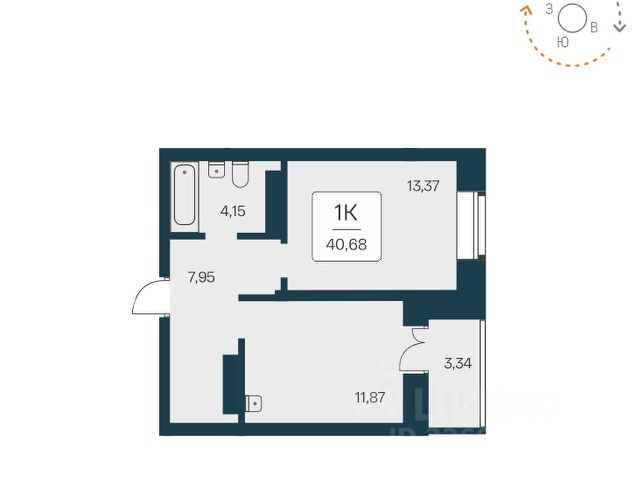 - Общая площадь 40.7 м2