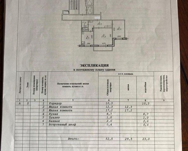 - Общая площадь: 52.5 м2