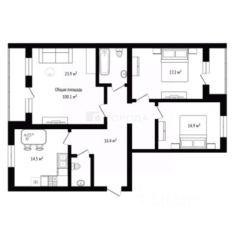 - Общая площадь: 100.1 м2