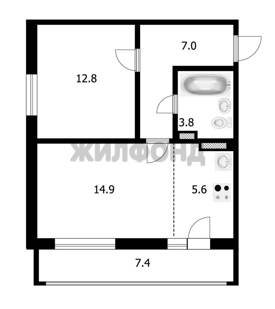 - Жилая площадь 27.7 м2