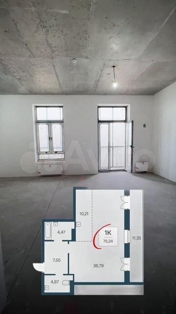 - Общая площадь 75.4 м2