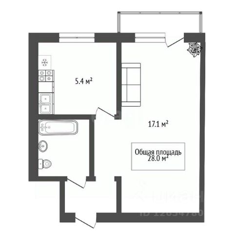 - Общая площадь: 28 м2
