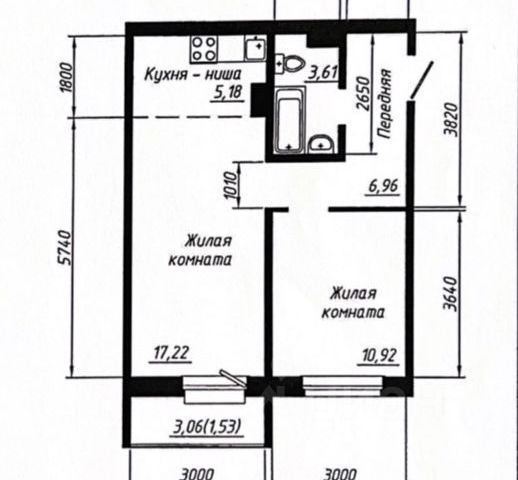 - Общая площадь: 44 м2