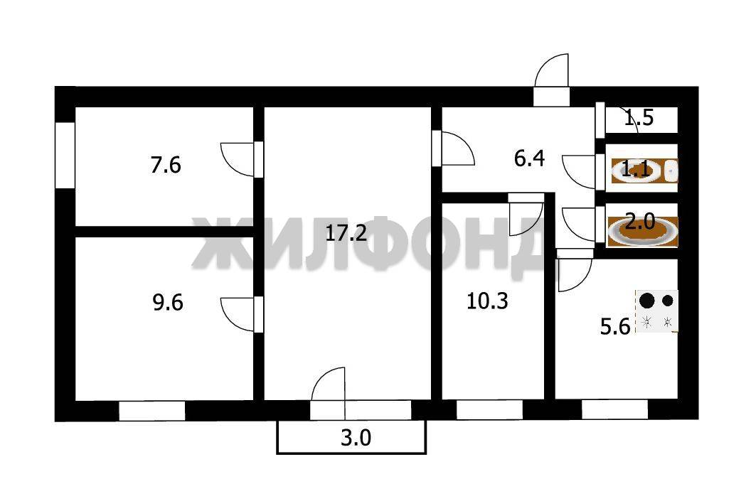 - Общая площадь: 61.1 м2
