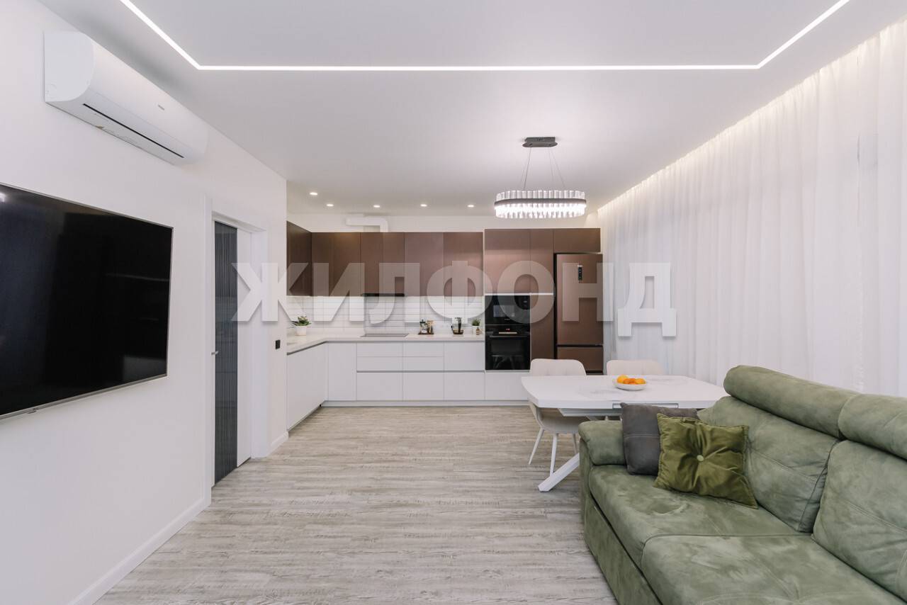 2 комн. квартира по ул. Фрунзе. Общей площадью: 61.00 кв.м. Предлагаем к покупке великолепную 2-х комнатную квартиру-студию , площадью 61 кв.м ,расположенную на 13 видовом этаже в ЖК История. Шикарный ремонт в квартире выполнен при участии дизайнерского бюро,которое воплотило желания собственников начиная от дизайн-проекта ,заканчивая выполнением ремонтных работ высококвалифицированными специалистами. Ремонт сделан не более 2-х лет назад и сохранен идеально.Материалы и оборудование использовались самые стильные и качественные. Стены отделаны комбинированным образом: частично обои и декоративная штукатурка. Функциональная продуманная планировка включает в себя спальню, большую кухню-гостиную, санузел оборудован душевой и ванной. Кухня-гостиная площадью 35 кв.м оснащена превосходным кухонным гарнитуром со встроенной качественной техникой BОSH. Новым собственникам останется вся мебель и техника (исключение TV) ЖК История в Новосибирске лучшее место, чтобы начать свою семейную историю. Два дома переменной этажности комфорт-класса созданы для счастливой, беззаботной жизни: здесь огромная детская площадка, благоустроенный двор без машин, продуманные планировки. Квартиры ЖК История созданы в соответствии с принципами немецкой школы проектирования, которые подразумевают функциональность каждого квадратного метра. Жилой комплекс расположен в 10-минутах ходьбы от двух станций метро Берёзовая роща и Золотая Нива. Рядом несколько школ, детские сады, поликлиника, ТРЦ Сибирский молл, Парк культуры и отдыха Березовая роща. Один взрослый собственник. Приглашаем на просмотр в удобное для Вас время. Рядом с объектом находятся:1 школа,13 детских садов,11 продуктовых магазинов,3 спортивных учреждения,1 гимназия,1 лицей,1 колледж. Возможен обмен на вашу недвижимость. Возможна продажа в рассрочку. При звонке, пожалуйста, сообщите номер варианта - JV002054164158