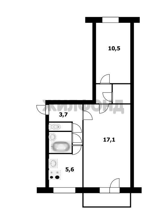 - Общая площадь 43.5 м2