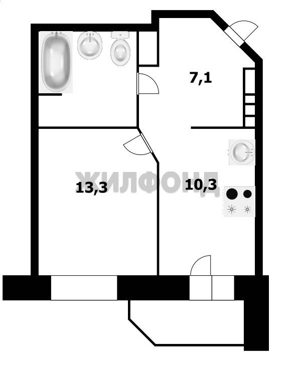 - Площадь кухни: 10.3 м2