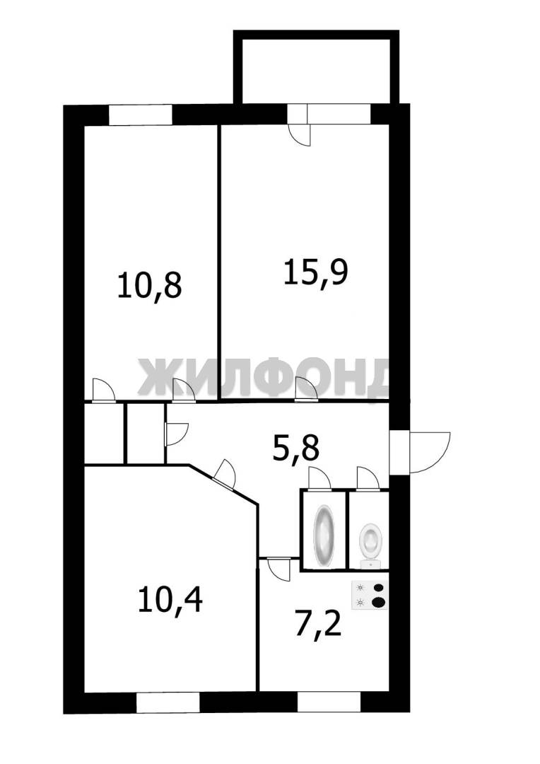 - Общая площадь: 57.8 м2