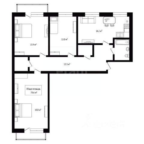 - Общая площадь: 78.6 м2