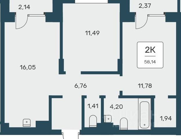 - Общая площадь: 58 м2