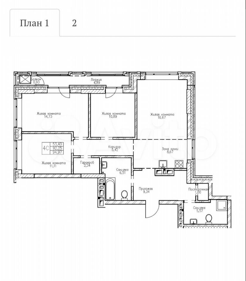 - Общая площадь: 92.2 м2