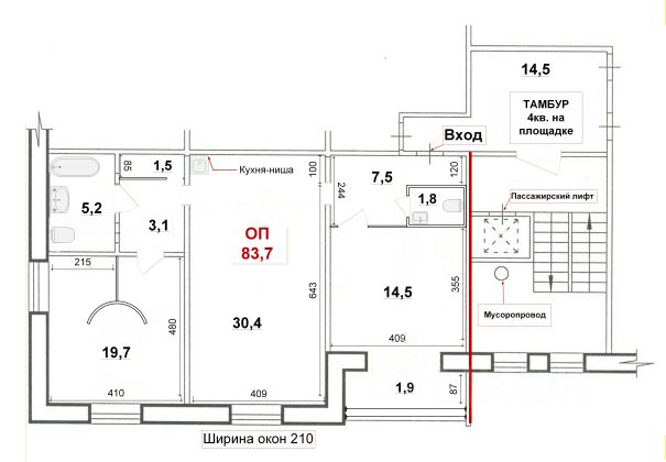 - Общая площадь: 83.7 м2