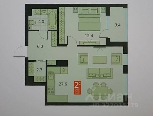 - Общая площадь: 51.4 м2