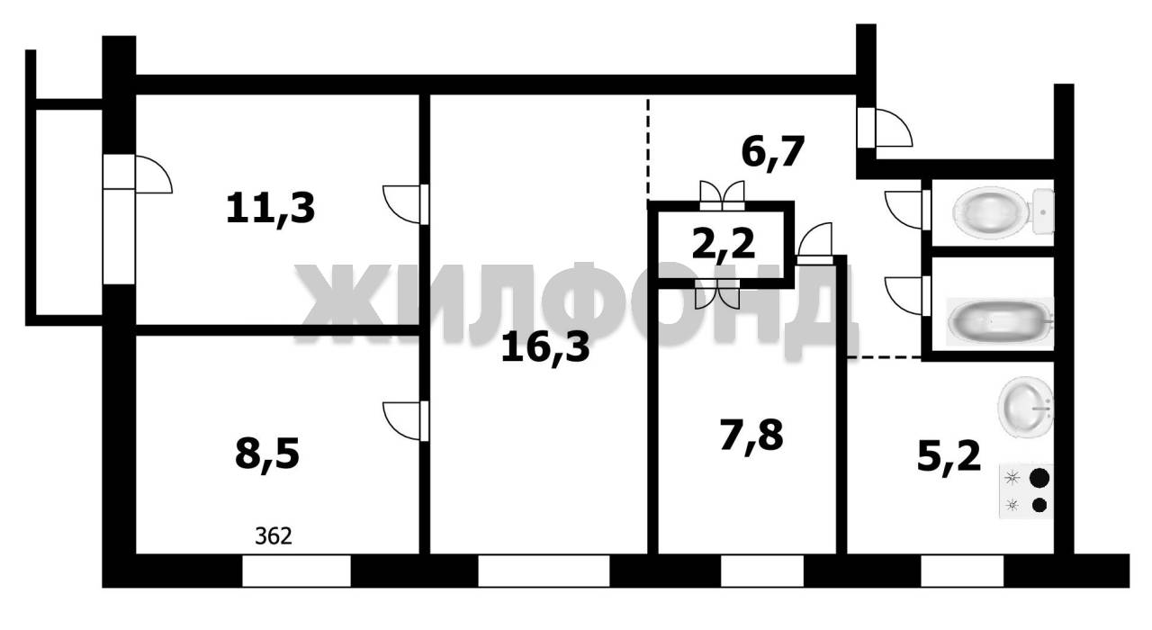 - Общая площадь: 62.1 м2