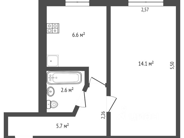 - Общая площадь: 27 м2