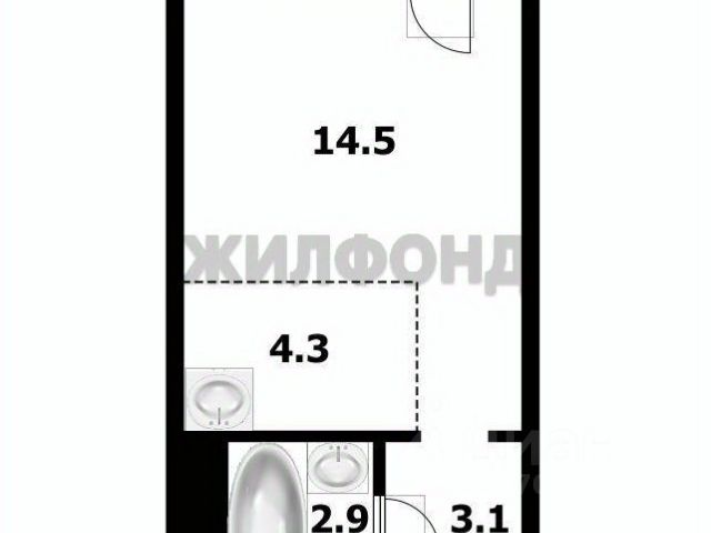 - Общая площадь 25.1 м2
