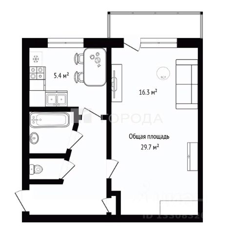 - Общая площадь: 29.7 м2
