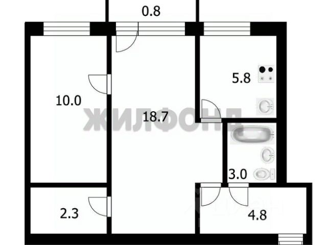 - Общая площадь: 45.4 м2