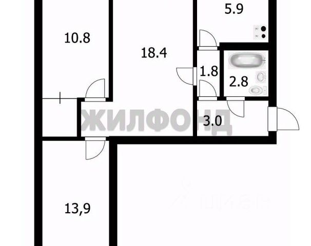 - Общая площадь: 59.5 м2