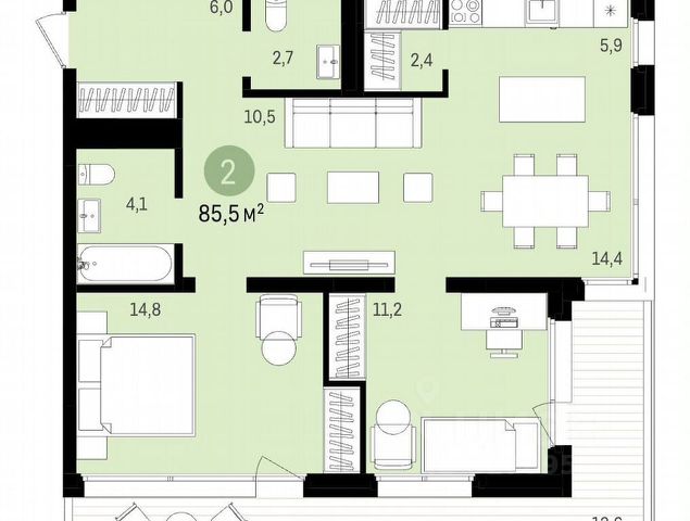 - Общая площадь 85 м2