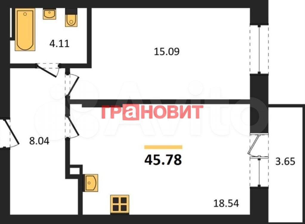 - Общая площадь: 45.8 м2