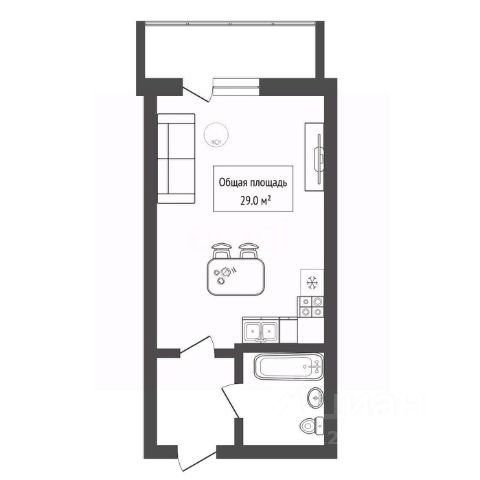 - Общая площадь 29.9 м2