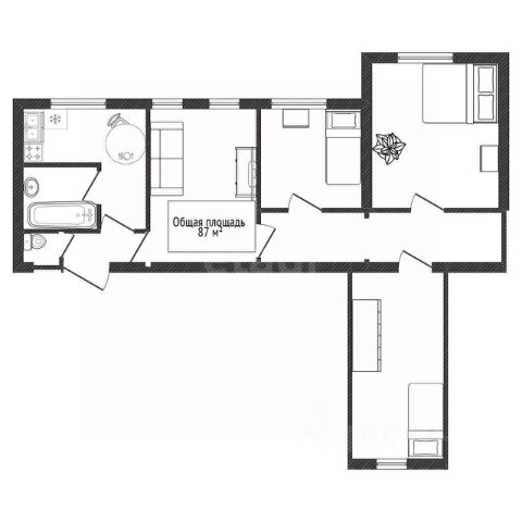 - Общая площадь 87 м2