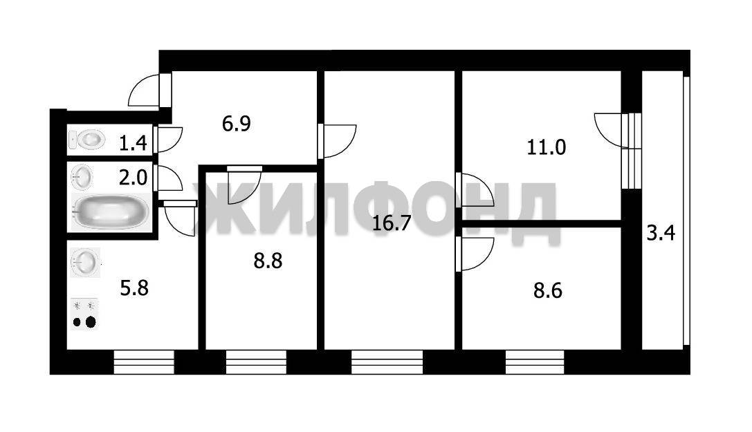 - Площадь кухни: 5.8 м2