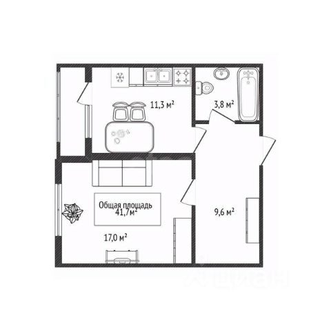 - Общая площадь 41.7 м2