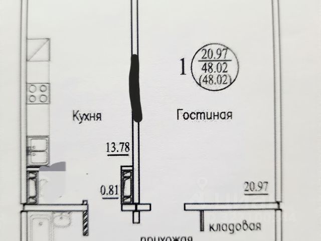 - Общая площадь: 48 м2