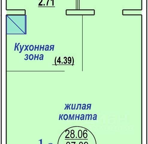 - Общая площадь 39 м2