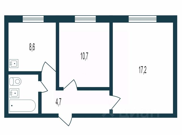 - Общая площадь 43.9 м2