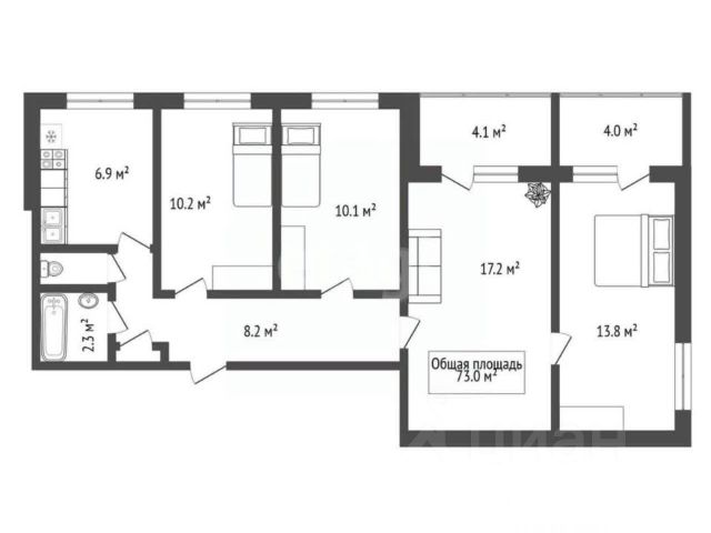 - Общая площадь 71.4 м2