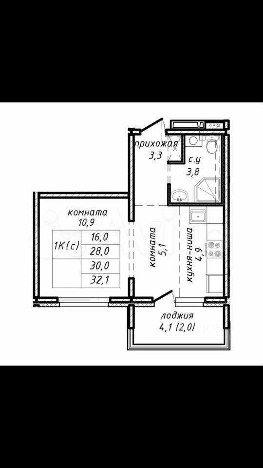 - Общая площадь: 32 м2