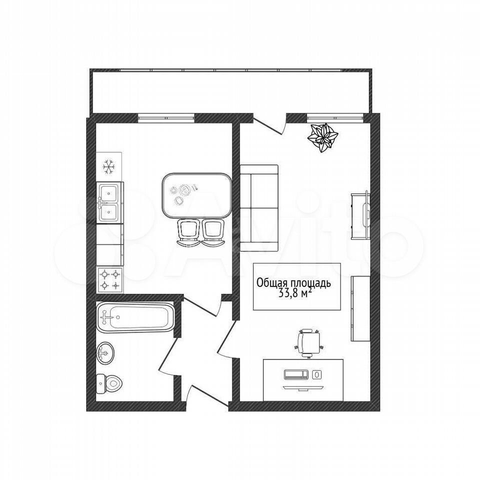 - Общая площадь: 33.8 м2