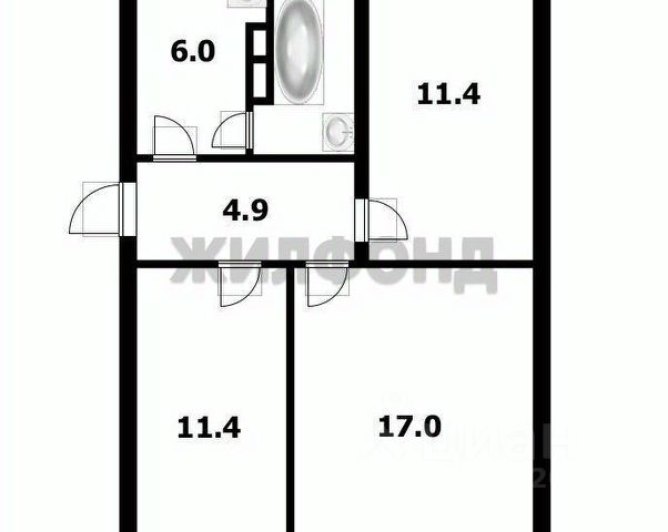 - Общая площадь: 54.5 м2